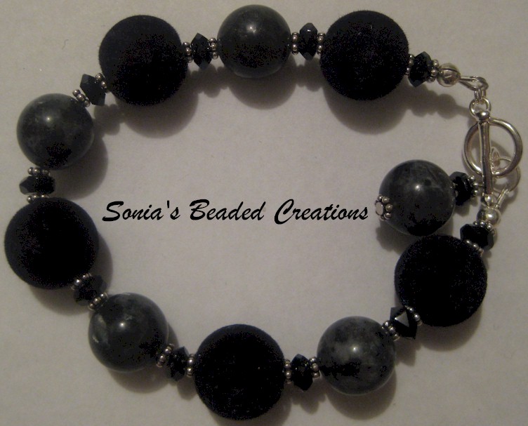 70 - Grey stone, glass and velvet beads with sterling silver accents. (Bracelet - Length 8")