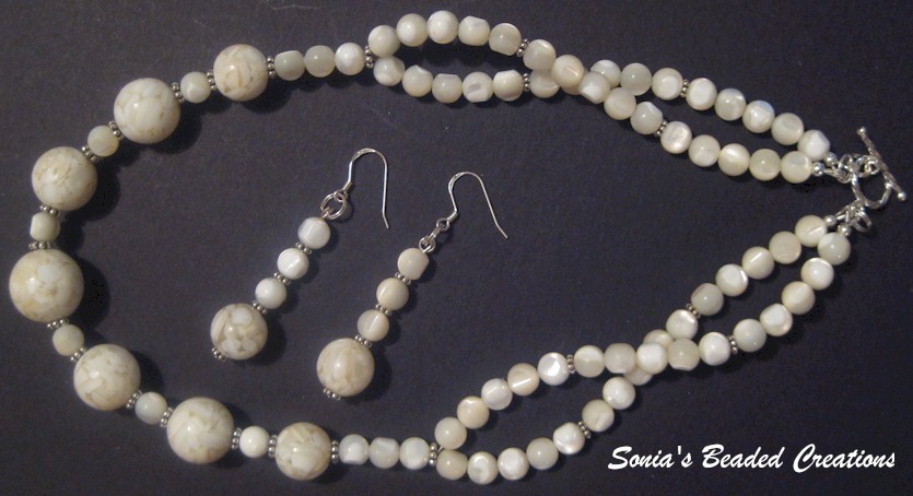 72 - Mother of pearl stones with sterling silver accents. (Necklace - Length 17 1/2" and Earrings)