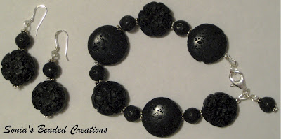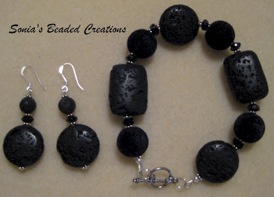 99 - Black lava and velvet stones with sterling silver accents. (Bracelet - Length 8 1/2" and Earrings)