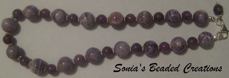 79 - Amethyst stone beads with sterling silver acc...