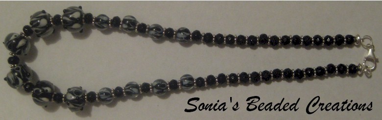94 - SOLD - Black glass beads with sterling silver...