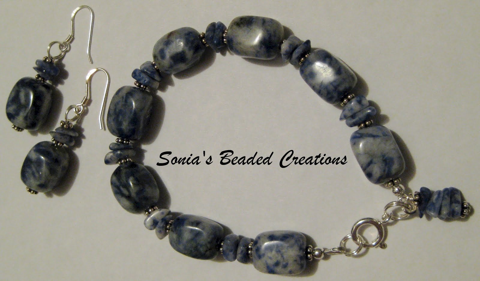 98 - Blue sodalite stones and chips with sterling silver accents. (Bracelet - Length 8" and Earrings)
