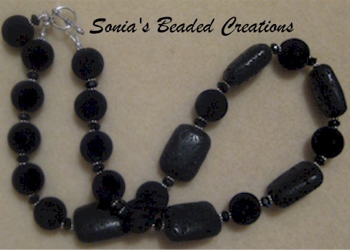 23 - SOLD - Black lava, glass and velvet beads wit...