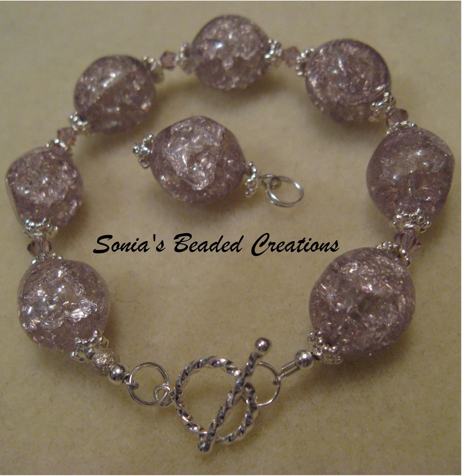 1 - Rose crackled glass and sterling silver accents. (Bracelet - Length 8" and Pendant)