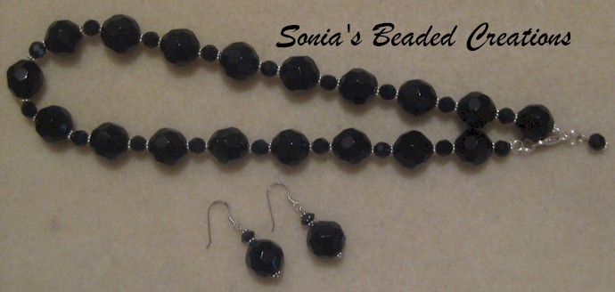 97 - SOLD - Black glass beads with sterling silver...