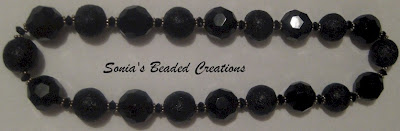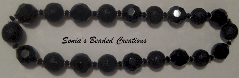 86 - Black glass and wooden beads with sterling silver accents. (Elastic Necklace - Length 18")