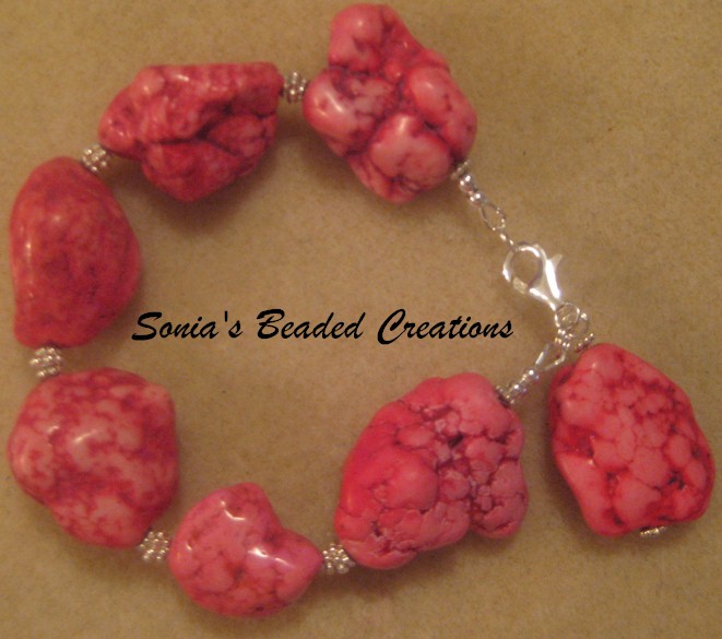 53 - Pink dyed howlite stones and sterling silver accents. (Bracelet - Length 8 1/2")