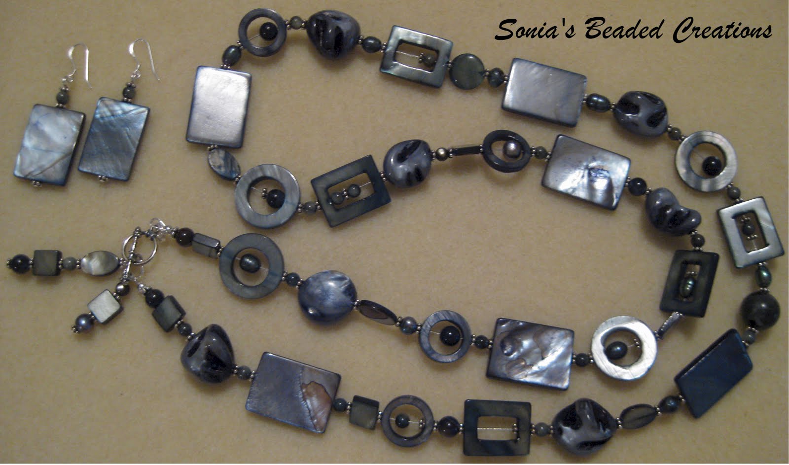 101 - SOLD - Blue shell stones and pearls with sterling silver accents. (Necklace - Length 33" and Earrings)