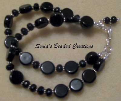 105 - Black glass beads with sterling silver accents. (Double Strand Bracelet - Length 7 1/2")