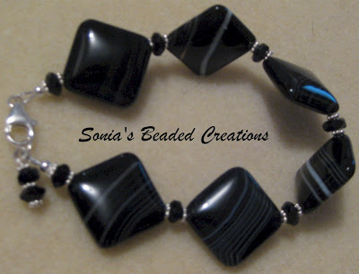 106 - Black glass beads and sterling silver accents. (Bracelet - Length 8")