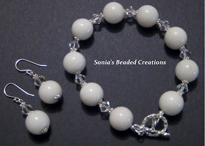 124 - White stone beads with glass and sterling silver accents. (Bracelet - Length 8" and Earrings)
