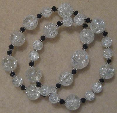 151 - Clear Crackled and Black Glass with Sterling Silver accents. (2 Elastic Bracelets)