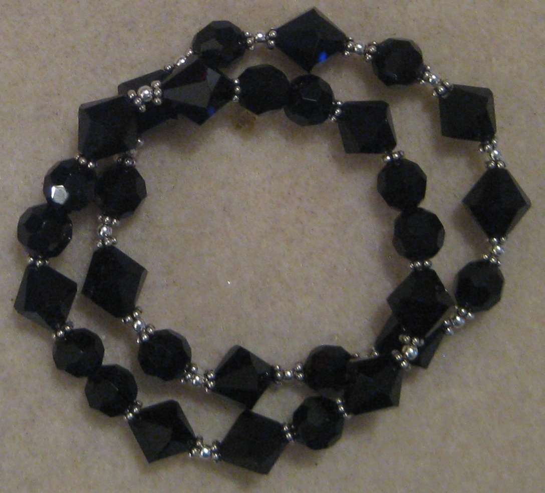 153 - Black Glass and Sterling Silver Accents. (2 Elastic Bracelets)