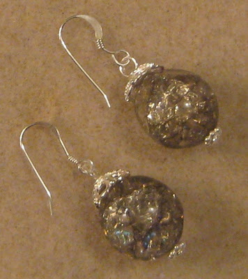 19E - Black Crackled Glass Earrings with Sterling Silver Accents. $25